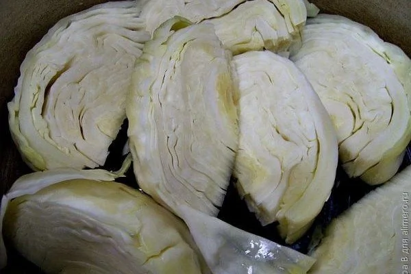 ШАГ 5 Белокочанную капусту разрезаем на 8–10 небольших частей, можно вместе с кочерыжкой.