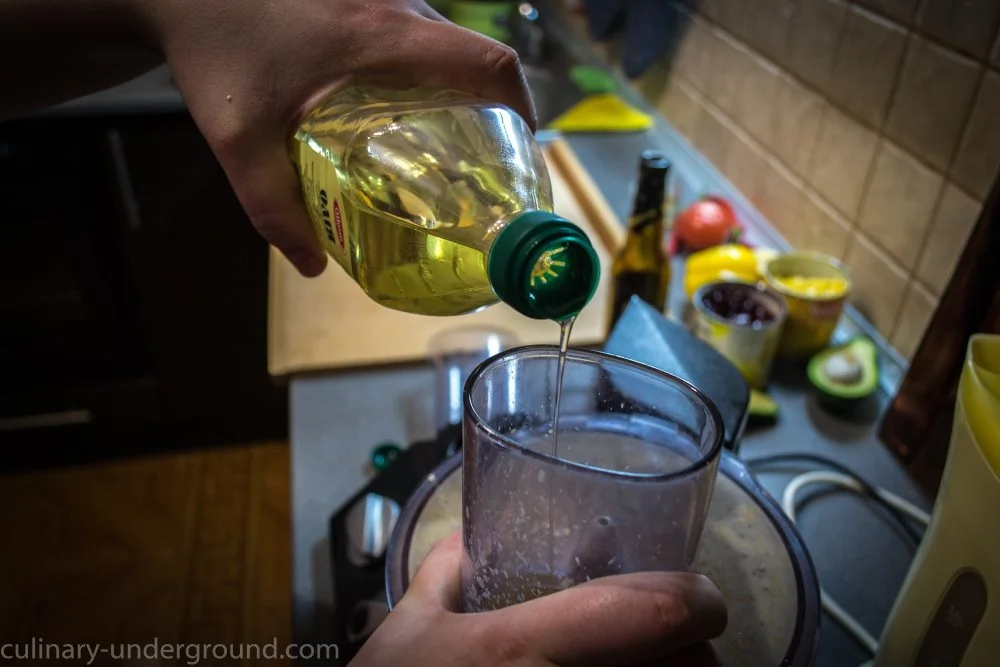 ШАГ 2 Затем чеснок, желтки, лимонный сок, перец (без сердцевины) и соль перебиваем в блендере.