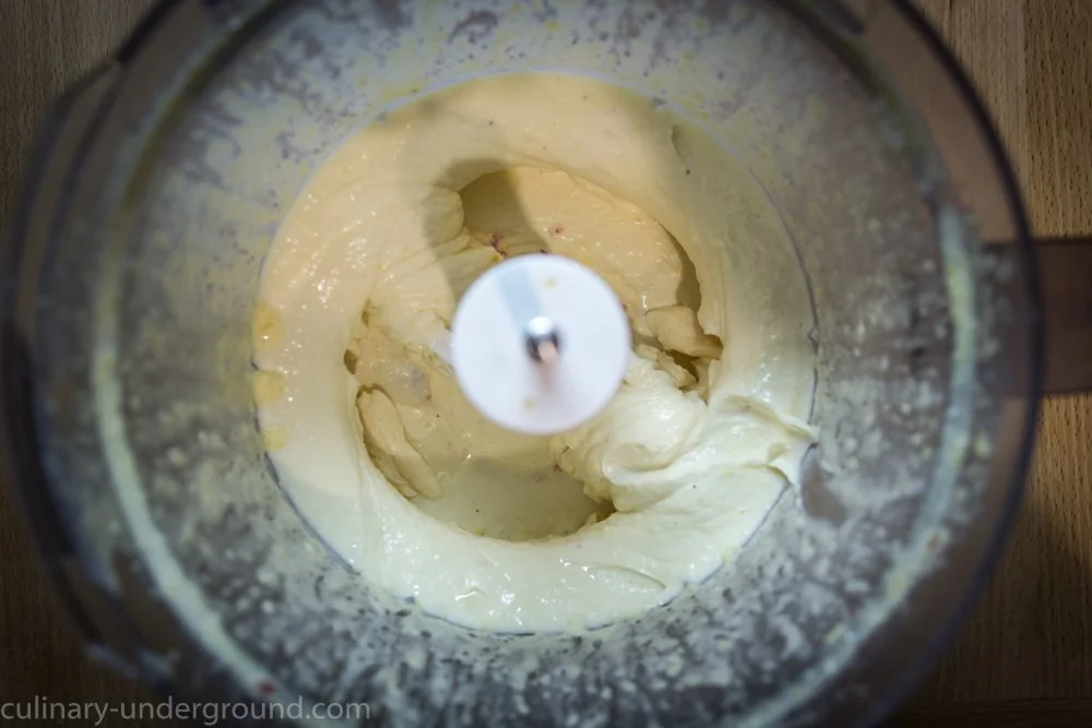 ШАГ 3 Ставим насадку для взбивания, кстати, можно и ножами взбить, но, если есть специальная насадка, то почему бы не воспользоватся. Включаем на максимум и тонкой струйкой вливаем масло. Взбиваем до консистенции магазинного майонеза.