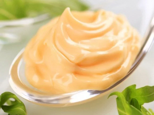 ШАГ 5 Когда все растительное масло будет введено и майонез станет густым, вмешайте лимонный сок и добавьте щепотку шафрана и 1/4 чайной ложки кайенского перца.