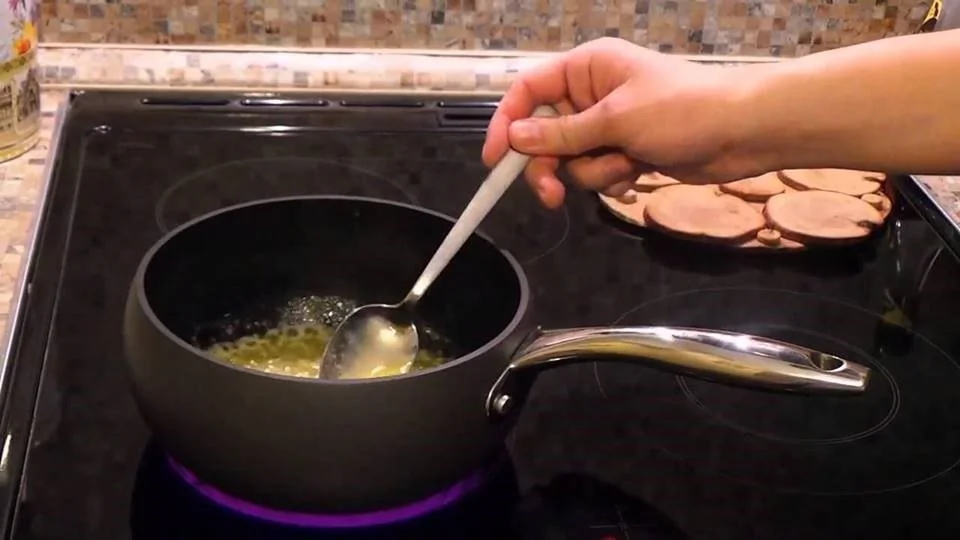 ШАГ 1 Грейте 50-75 грамм соленого сливочного масла в кастрюле на среднесильном огне примерно 2 минуты, пока оно не начнет пениться и не станет орехово-коричневым.