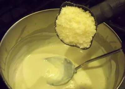 ШАГ 5 Добавьте 75 г тертого сыра и 1 ч. ложку дижонской горчицы без нагрева.