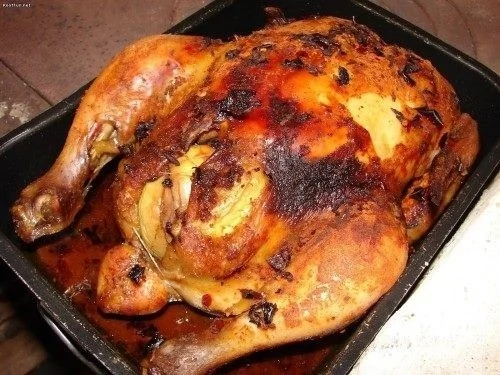 ШАГ 1 Выньте курицу из противня и снимите большую часть жира. Поставьте на плиту на средний огонь и добавьте 200 мл белого вина. Поскребите дно противня и уварите до консистенции сиропа.