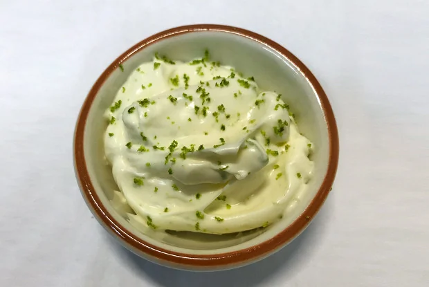 ШАГ 2 Добавить сок лайма, тертую цедру и мелко нарезанные листья эстрагона, соль, перец и сахар по вкусу.