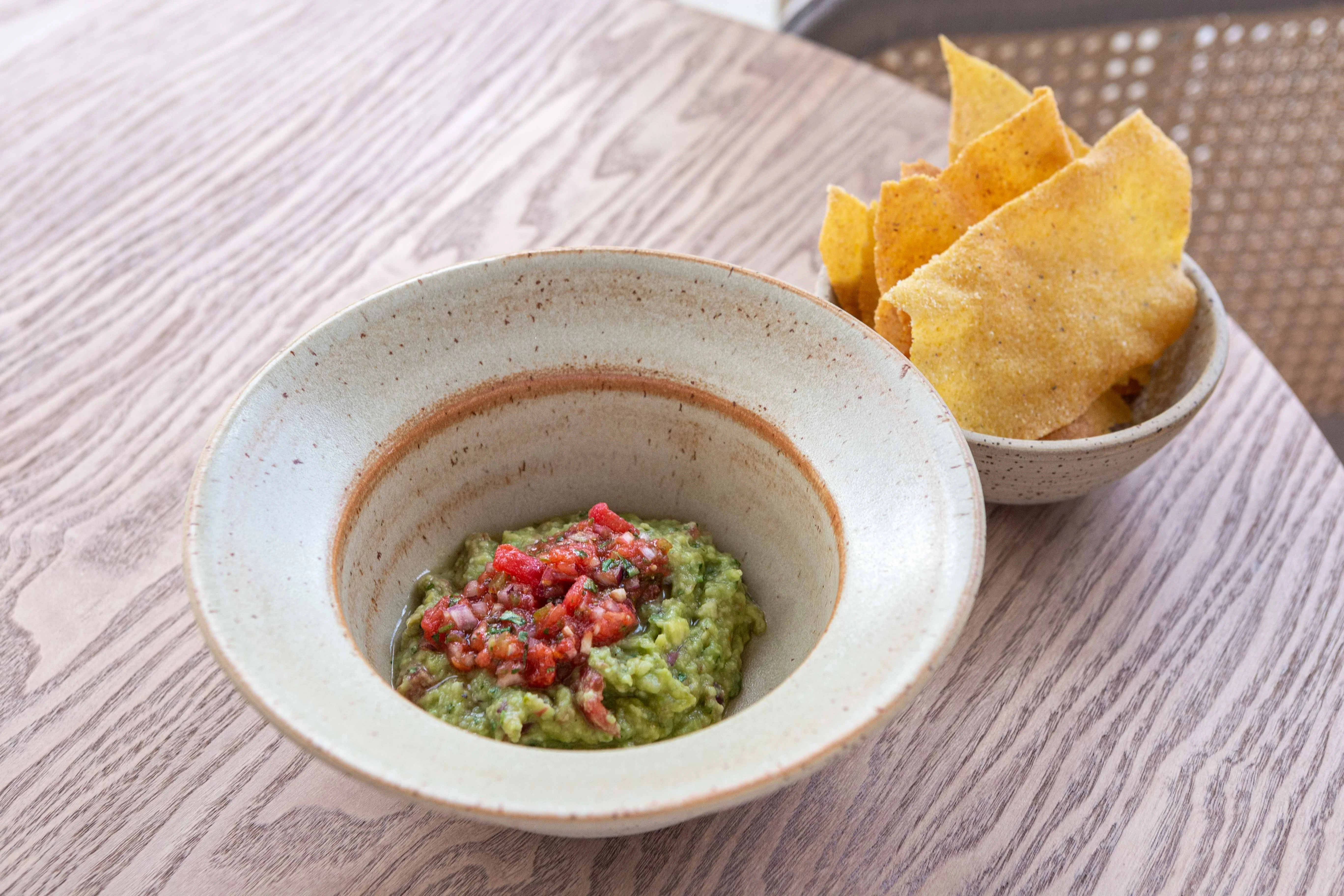 ШАГ 5 Подавать гуакамоле с томатной сальсой и начос.