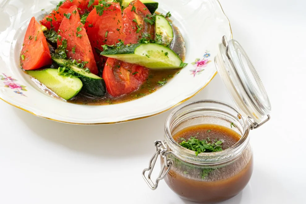 Ингредиенты для приготовления Заправка для свежего салата из дачных овощей: