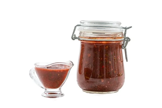 ШАГ 8 Разлить готовый соус по горячим стерилизованным банкам.