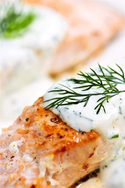 ШАГ 1 В небольшой миске смешайте сметану, мелко нарезанный укроп, измельченный красный лук и лимонный сок. Посолите и поперчите по вкусу.
