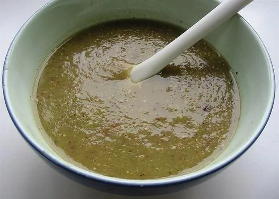 ШАГ 2 Выложите половину соуса в блендер и измельчите. Перелейте в банку. Повторите тоже самое с оставшимся соусом.