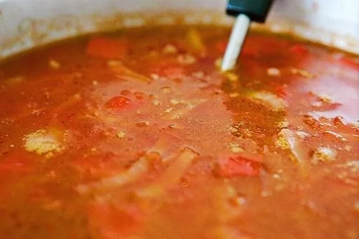 ШАГ 5 Попробовать на соль и перец и при необходимости добавить. Если не хватает кислоты, добавить столовый уксус — но не более 2-х столовых ложек.