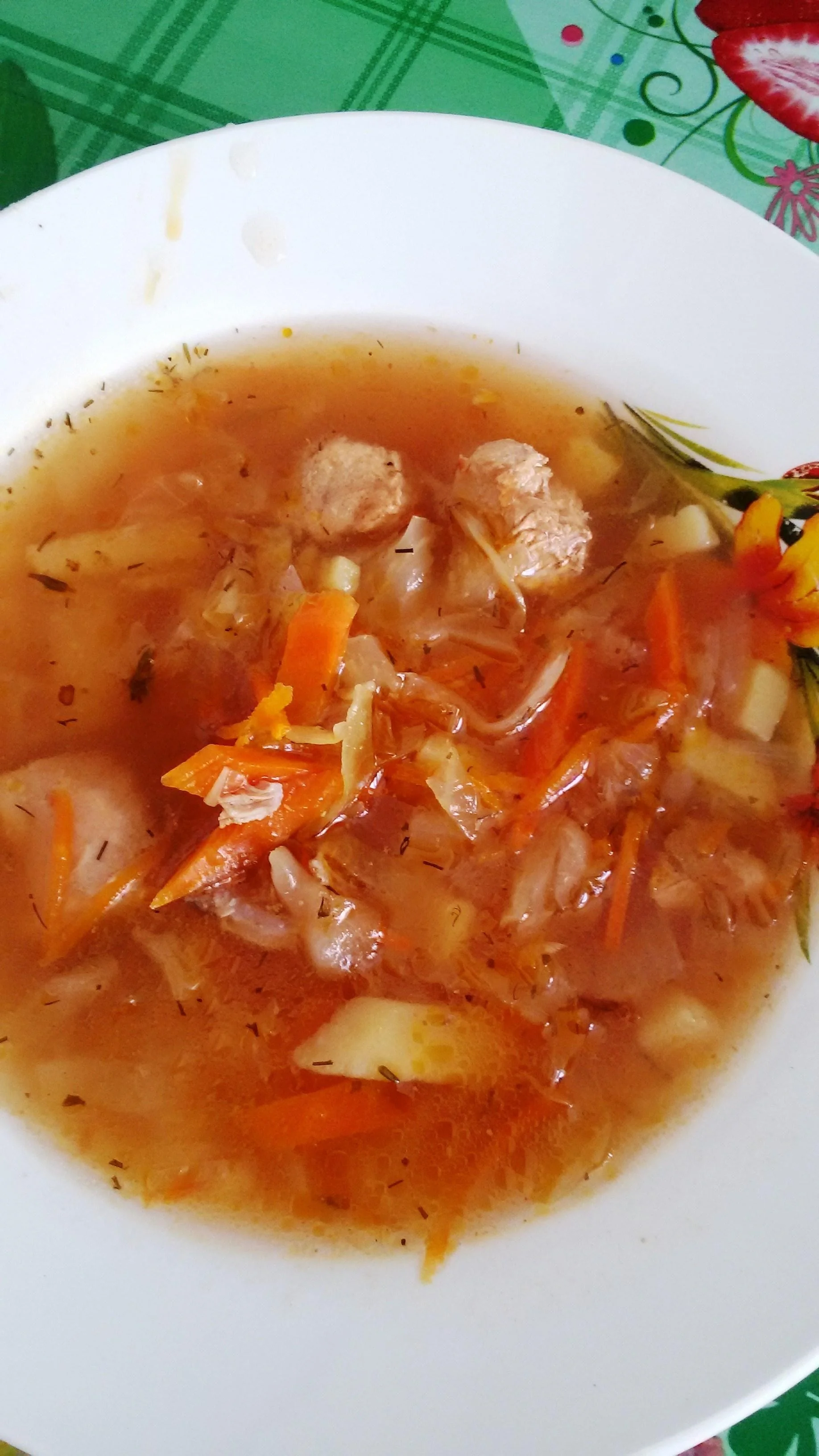 Щи из свежей капусты с зеленью