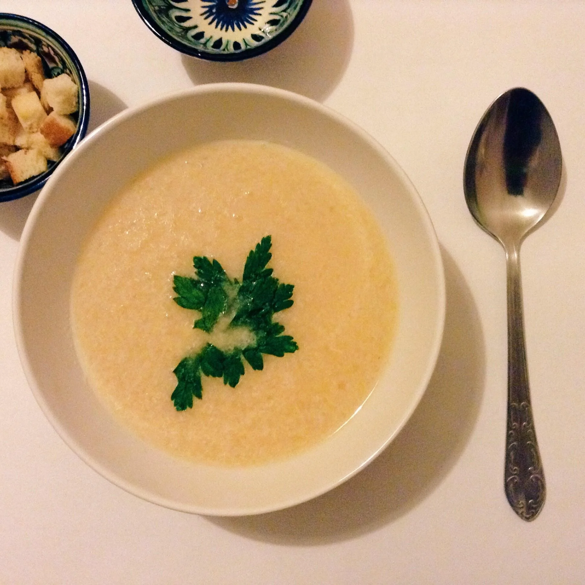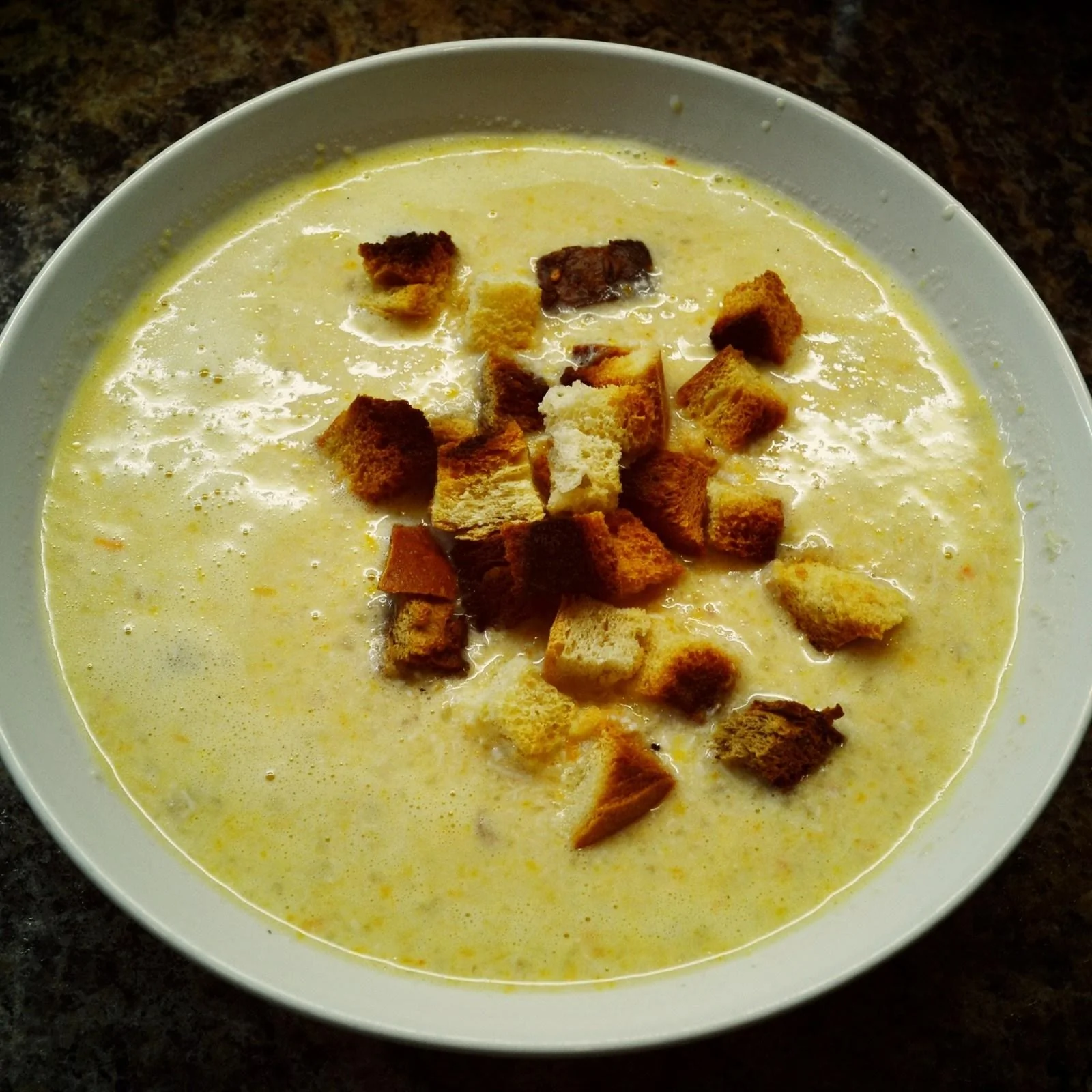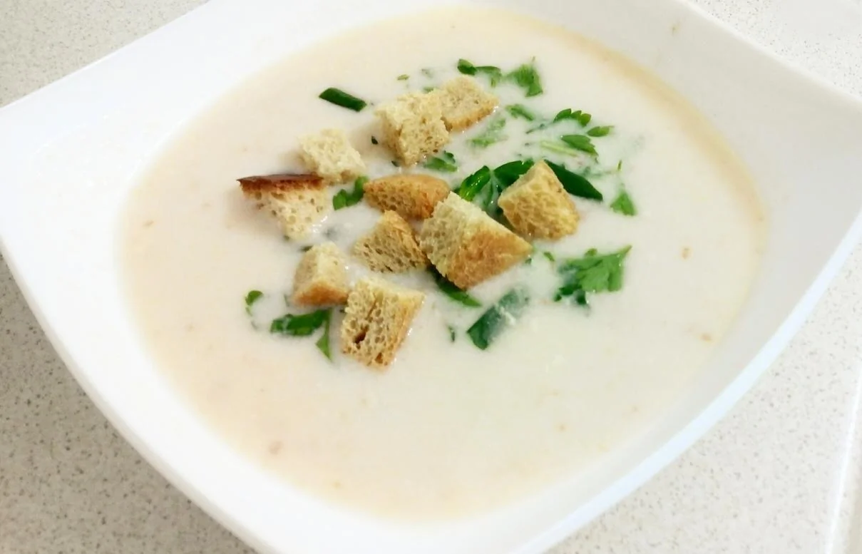 ШАГ 4 При подаче можно добавить давленного чесночка (на любителя) и греночки из белого хлеба.