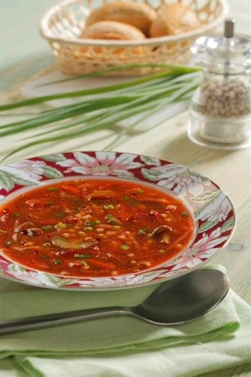 ШАГ 6 Положите в кастрюлю с супом зеленый лук и Заправку Campbell's Домашняя Классика для борща. После того, как бульон вновь закипит, снимите кастрюлю с огня. Борщ будет вкуснее, если дать ему немного настояться.