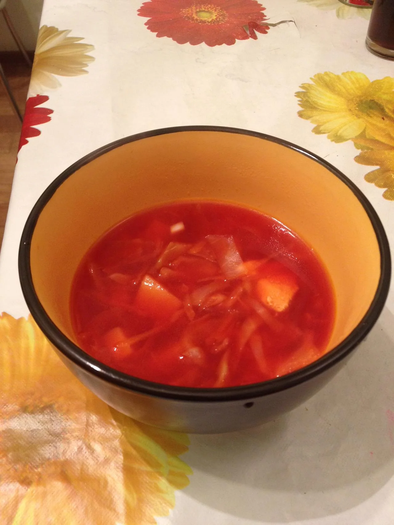 ШАГ 4 Капусту нашинковать и добавить в бульон.