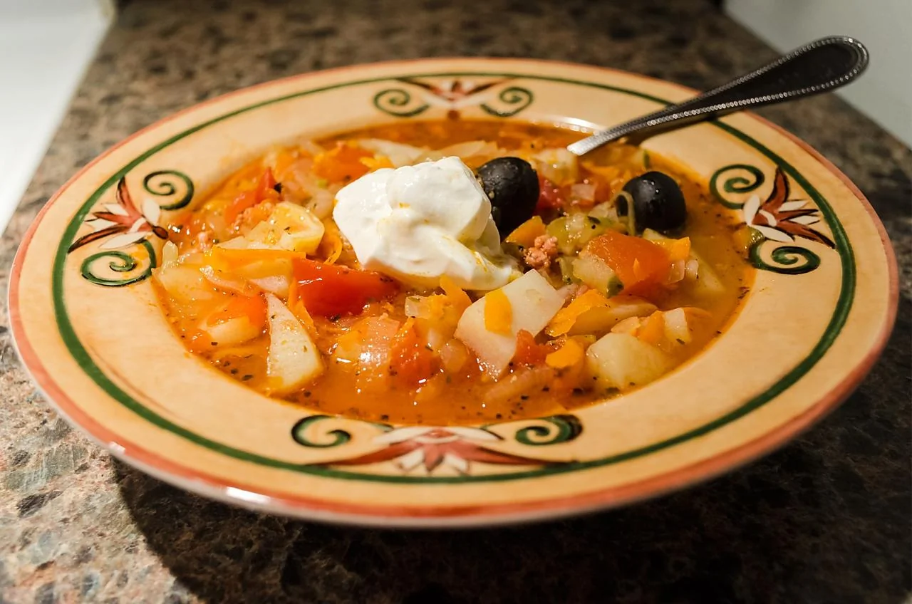 ШАГ 8 Подавать с долькой лимона, оливками и сметаной.