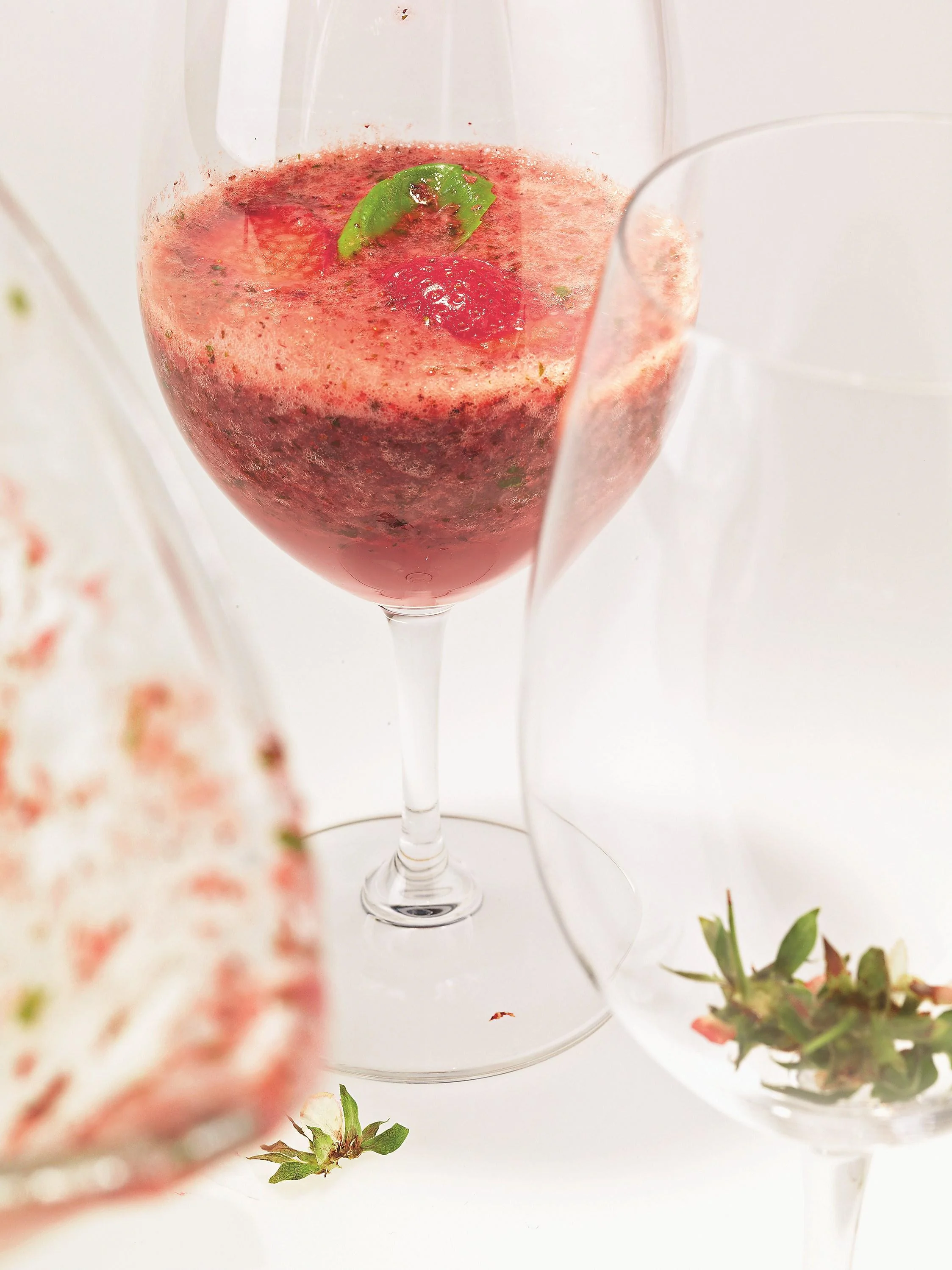 Суп из клубники, перечной мяты, зеленого базилика и белого игристого вина