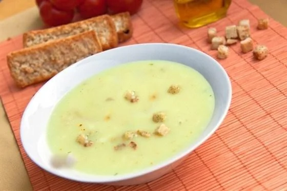 ШАГ 3 Отправьте желтки в супницу и медленно вливайте суп, так, чтобы не образовались комочки. Добавьте масло и, когда оно растает, перемешайте суп, добавьте крутоны и тут же подавайте.