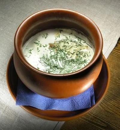 ШАГ 3 Залить почти готовый суп молоком, посолить. Важно: когда молоко уже нагрелось, но еще не образовалась пенка, кинуть сливочное масло!