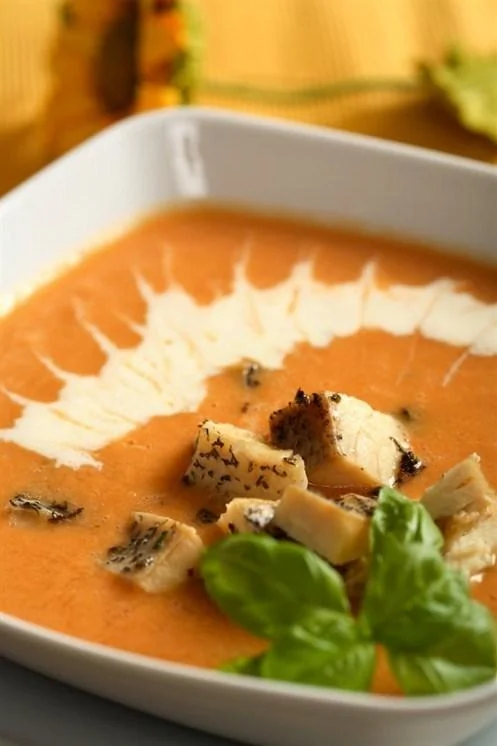 ШАГ 6 Перед тем как подавать, вмешайте сливки и оставленную рыбу. Перелейте суп в супницу и посыпьте петрушкой. Подавайте немедленно.