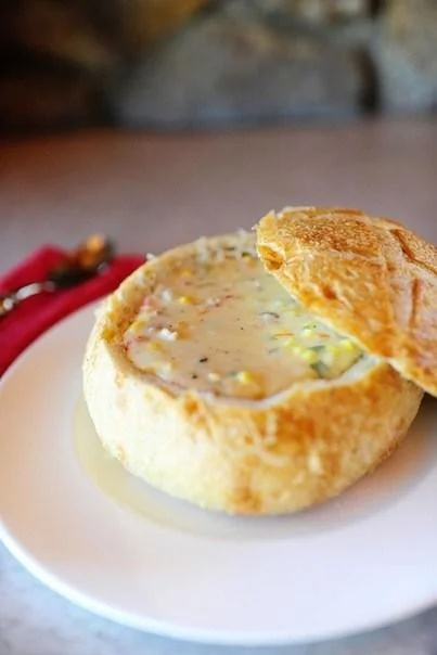 ШАГ 8 Возьмите хлеб. Достаньте всю мякоть из хлеба. Залейте суп.