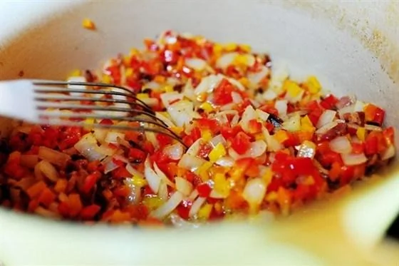 ШАГ 2 Добавьте мелко нарезанный перец.