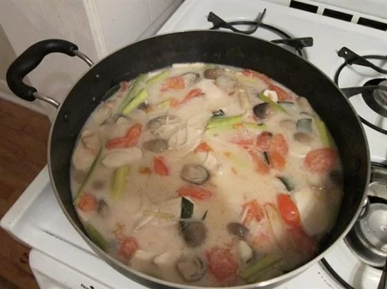 Тайский суп том-кха с кокосовым молоком и морепродуктами