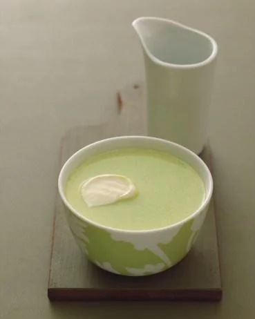ШАГ 4 Немного остудить суп, измельчить его в блендере и поместить обратно в кастрюлю. Добавить сметану и перемешать.