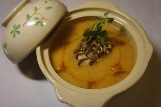 Тыквенный суп-пюре с вешенками и майораном