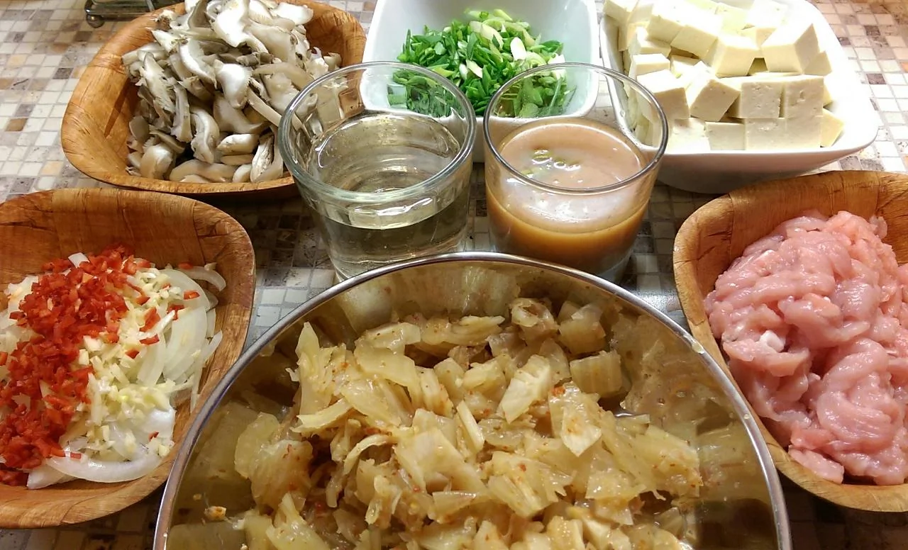 Ингредиенты для приготовления Суп кимчи тиге (Kimchi Tige):