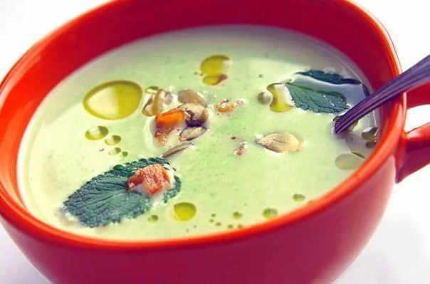 ШАГ 5 Чтобы подавать суп холодным, быстро его охладить и поставить в холодильник — возможно, понадобится долить бульона перед тем, как подавать, так как он загустеет, остывая. Чтобы подать горячим, вернуть в промытую кастрюлю и прогреть, не доводя до кипения.