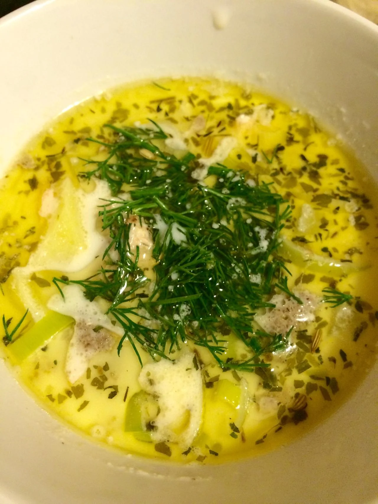 ШАГ 1 Уложить в большую кастрюлю суповой набор из семги (голову, хвост, плавники), лук-порей, сельдерей, разрезанную напополам луковицу, лавровый лист, тимьян, черный перец, залить все это тремя литрами воды, накрыть крышкой и поставить на небольшой огонь на 10–20 минут. Затем добавить в бульон две картофелины и оставить еще на 20 минут. Не забыть посолить.