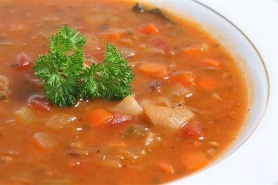 ШАГ 2 Налейте в обжаренные овощи куриный бульон, доведите до кипения, затем на медленном огне варите еще минут 15.