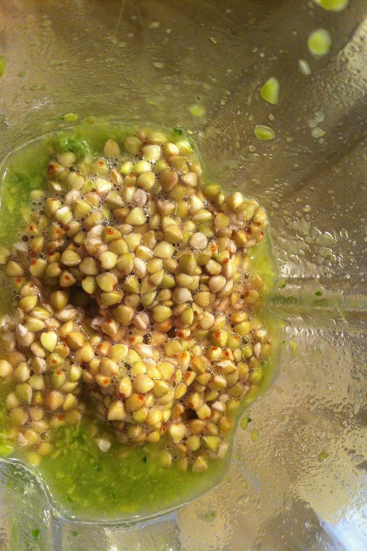 ШАГ 3 Взбить в блендере авокадо, пару веточек базилика, гречку и воду.