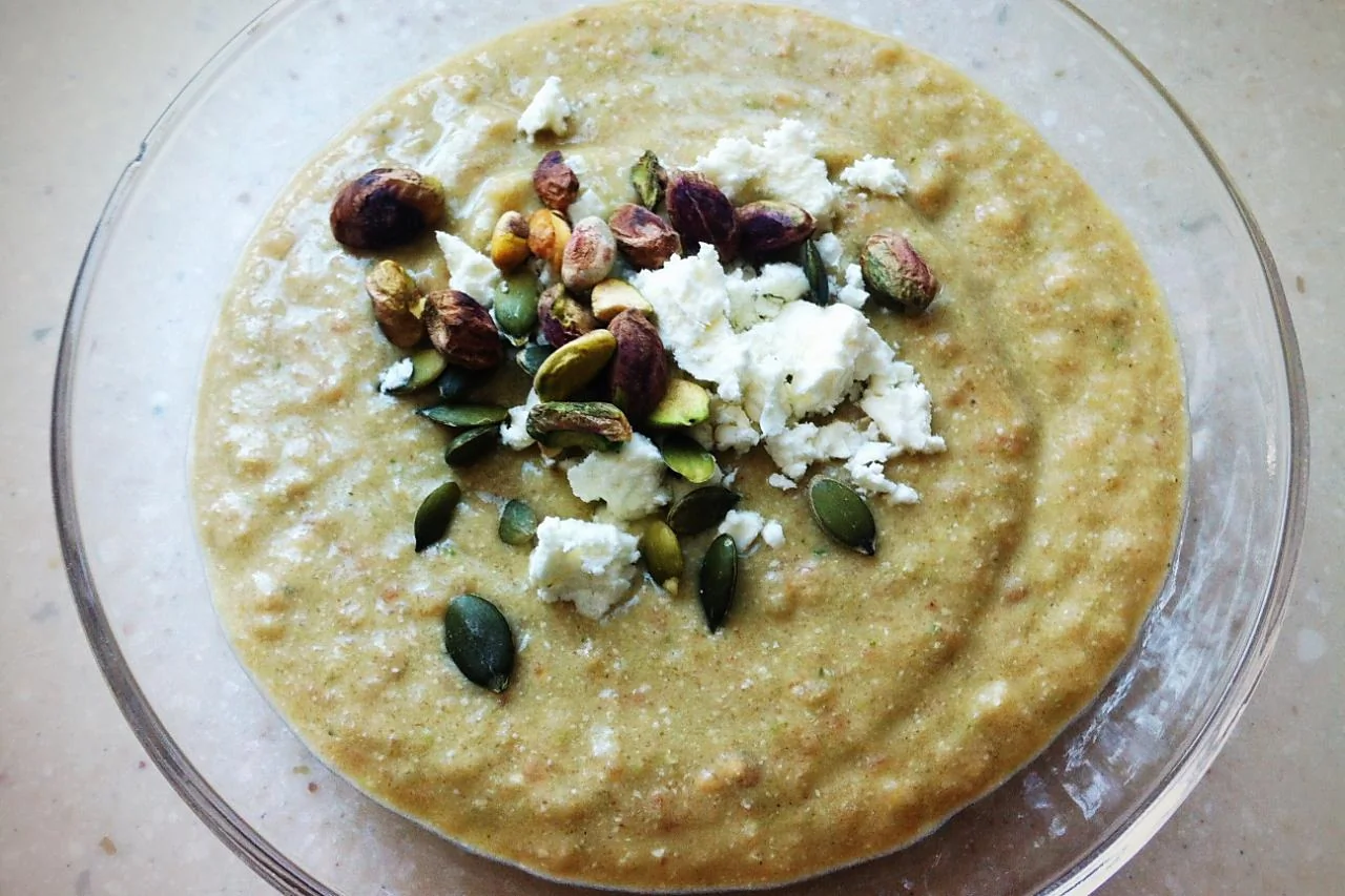 ШАГ 7 Подавать с козьим сыром, фисташками и тыквенными семечками.