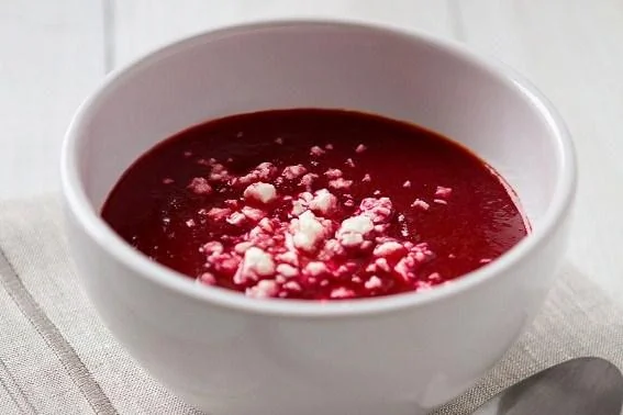 ШАГ 1 Выжмите сок из сельдерея и свеклы. Снимите пенку. Смешайте с бульоном, добавьте уксус, сахарную пудру, оливковое масло, соль, перец. Перемешайте и охладите.