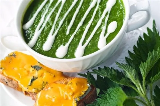 ШАГ 1 Листья крапивы вымыть, положить в сито, обдать 1/2 л кипятка. Можно также использовать шпинат. Черемшу вымыть и нарезать соломкой. Лук-шалот очистить и нарезать кубиками.