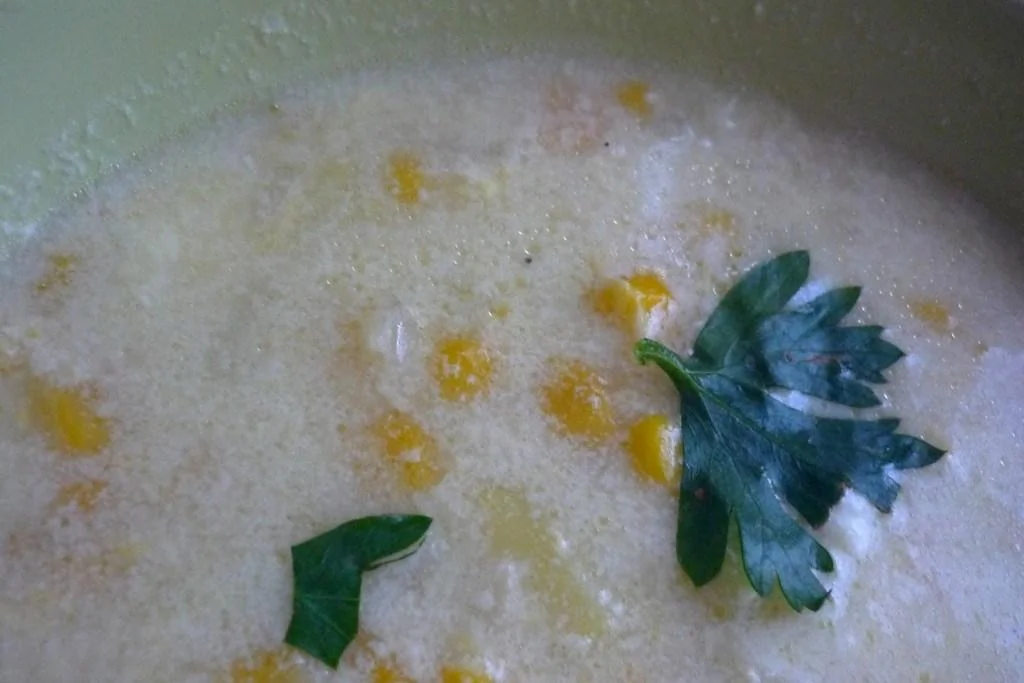 ШАГ 3 Через 15 минут в кастрюлю добавить кипящее молоко, кукурузу и нарезанный кубиками сыр. Поварить еще 5 минут.