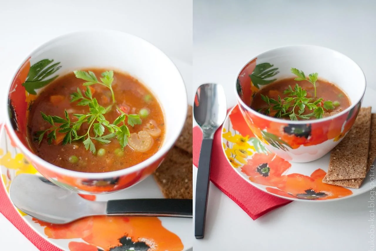 ШАГ 5 Сгрузить томаты в блендер, добавить свежие петрушку и базилик (или сушеные приправы), перемолоть в однородную жидкую массу и вылить к потушенным овощам. Тут обратите внимание на консистенцию, возможно, вы захотите сделать блюдо более жидким, тогда добавьте еще перемолотых помидоров.