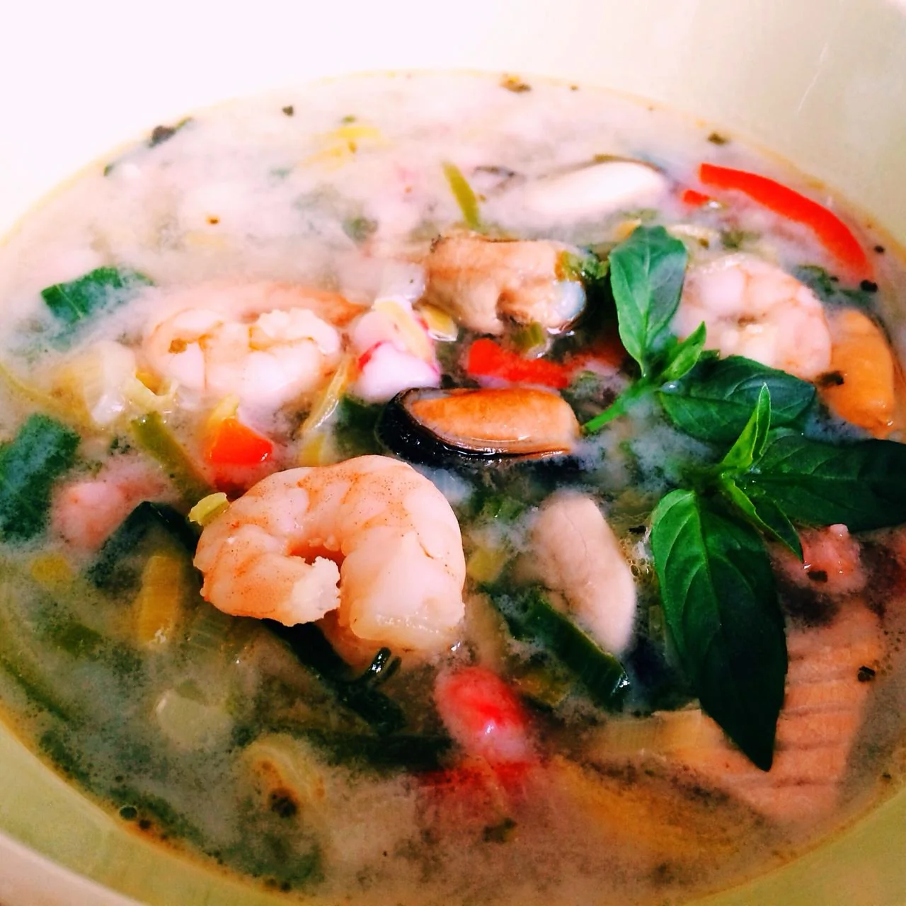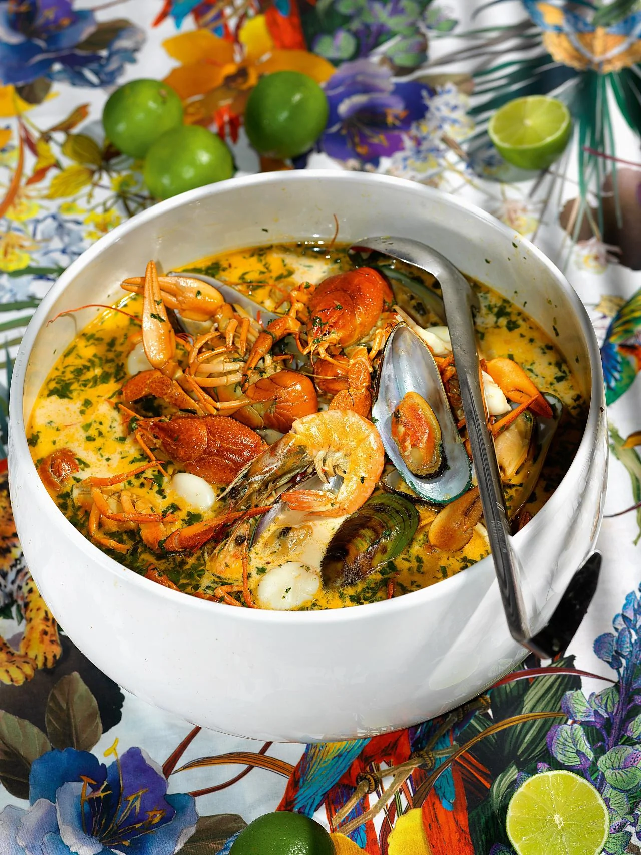 ШАГ 5 Заправить суп соком и цедрой лаймов, посолить по вкусу и подавать, не забыв кроме тарелок с супом поставить на стол и тарелку для ракушек и панцирей.