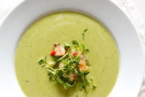 Холодный гороховый суп с креветками