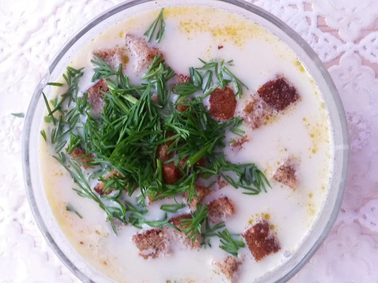 ШАГ 5 Добавить плавленый сыр, хорошо перемешать, сыр почти сразу растворится. Если вы используете плавленые сырки, их необходимо предварительно нарезать мелкими кубиками и проварить чуть дольше до полного растворения в супе. Суп поперчить, при необходимости еще немного посолить.