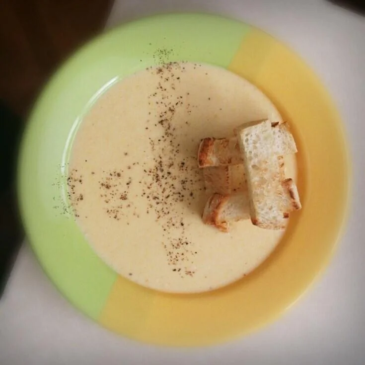 ШАГ 4 Выложить морковь и лук в бульон, добавить кукурузу. Если нет молодой, то можно консервированную. Посолить и поперчить по вкусу. Прогреть и блендером довести до однородности. В зависимости от густоты можно добавить куриного бульона.