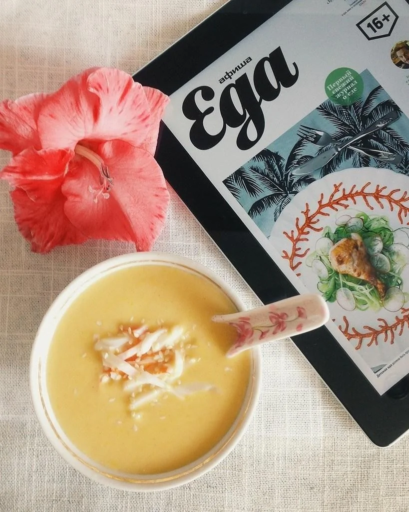 ШАГ 3 В кастрюле подогреть молоко. Высыпать овощи. Варить на слабом огне 15–20 минут, пока морковь и лук не станут мягкими. За пять минут до готовности добавить специи по вкусу.
