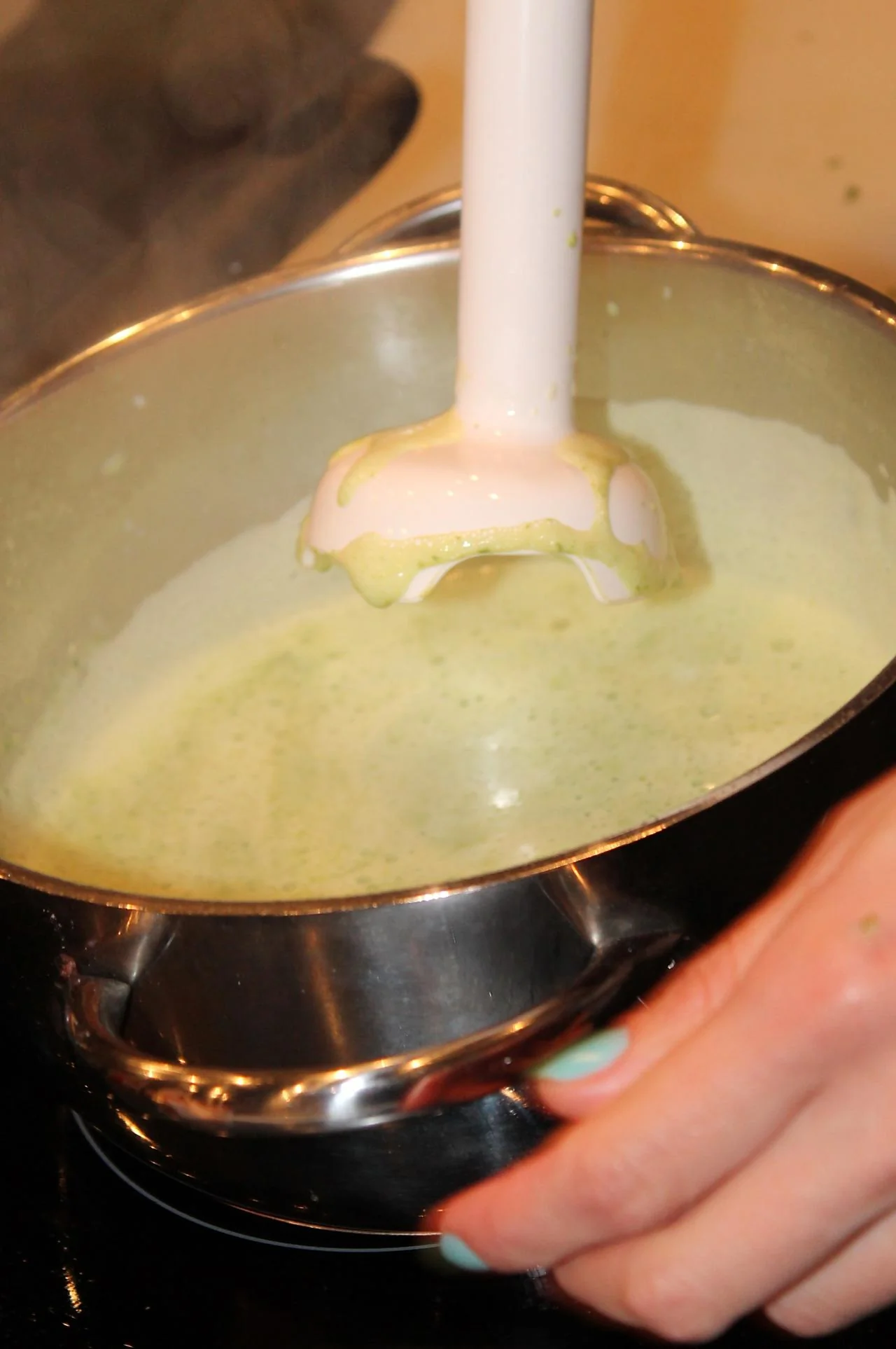 ШАГ 3 Провариваем в течение 5 минут с добавлением специй. Добавляем сливки и размельчаем до кремообразного состояния.