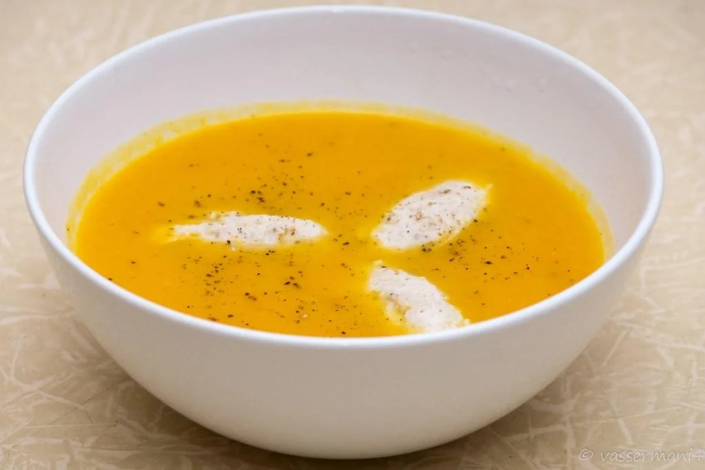 ШАГ 1 Тыкву почистить, нарезать небольшими кусочками и отварить до мягкости в овощном бульоне, выключить газ, чтобы тыква не превратилась в кисель.