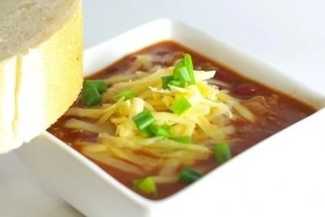 ШАГ 5 После того, как отведенное время для варки прошло, добавляем сахар, соль. Добавляем банку консервированной фасоли. Кладем ложку какао. Добавляем еще воды и готовим на слабом огне еще около 15 минут. Подаем суп чили с тертым сыром и белым хлебом.