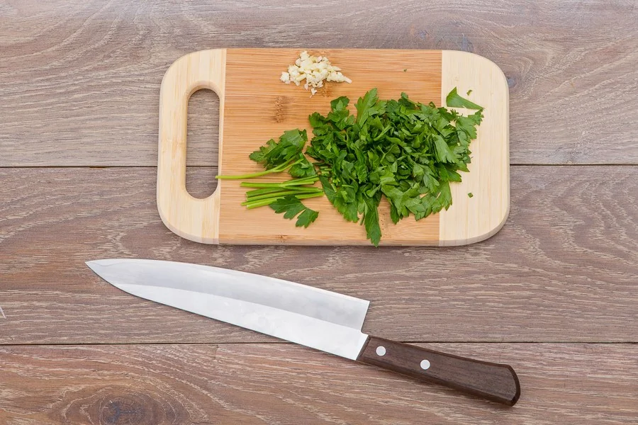 ШАГ 3 Раздавите, почистите и мелко порубите чеснок, петрушку мелко порубите.