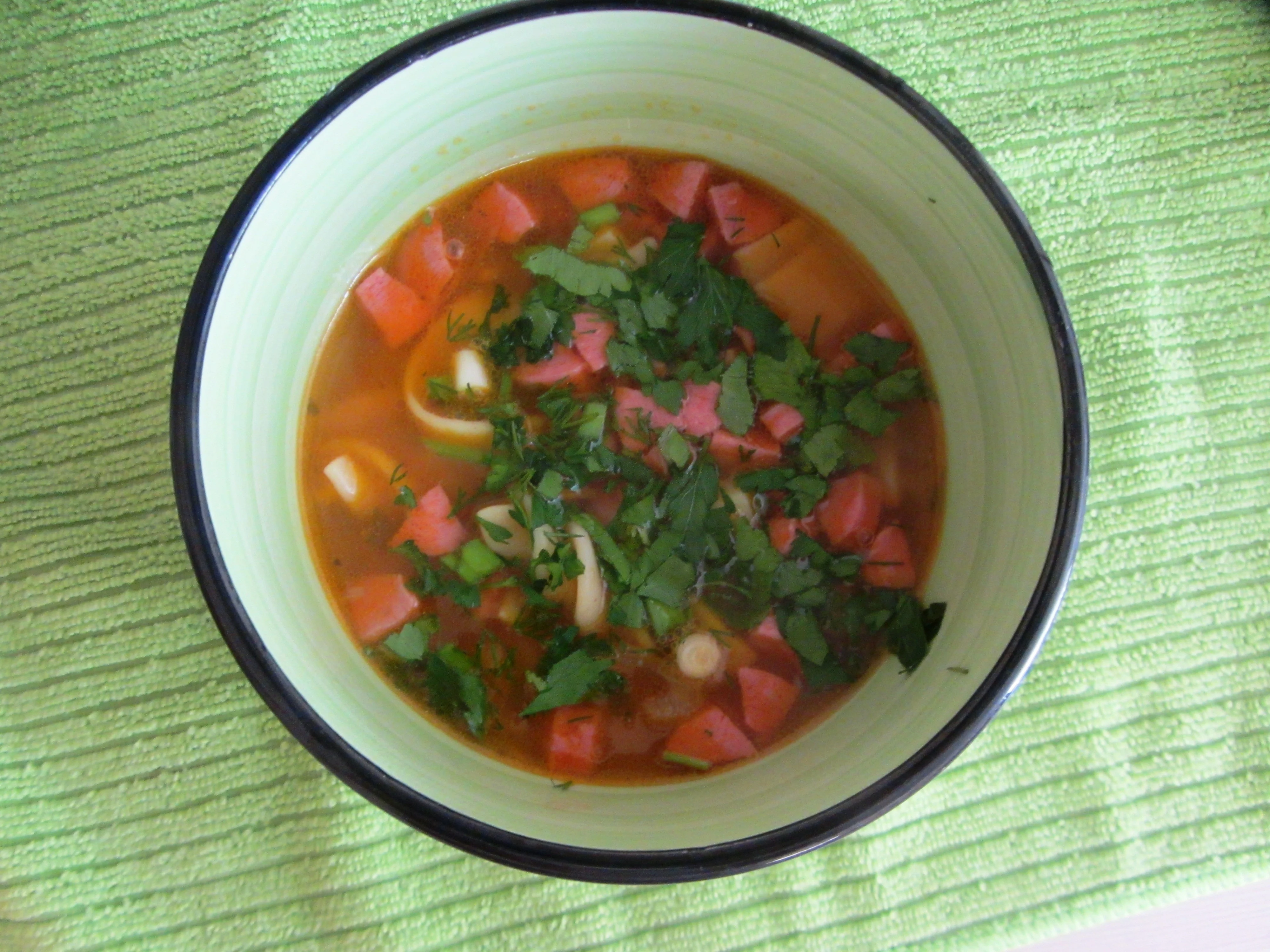 Ингредиенты для приготовления Суп с сосисками и макаронами: