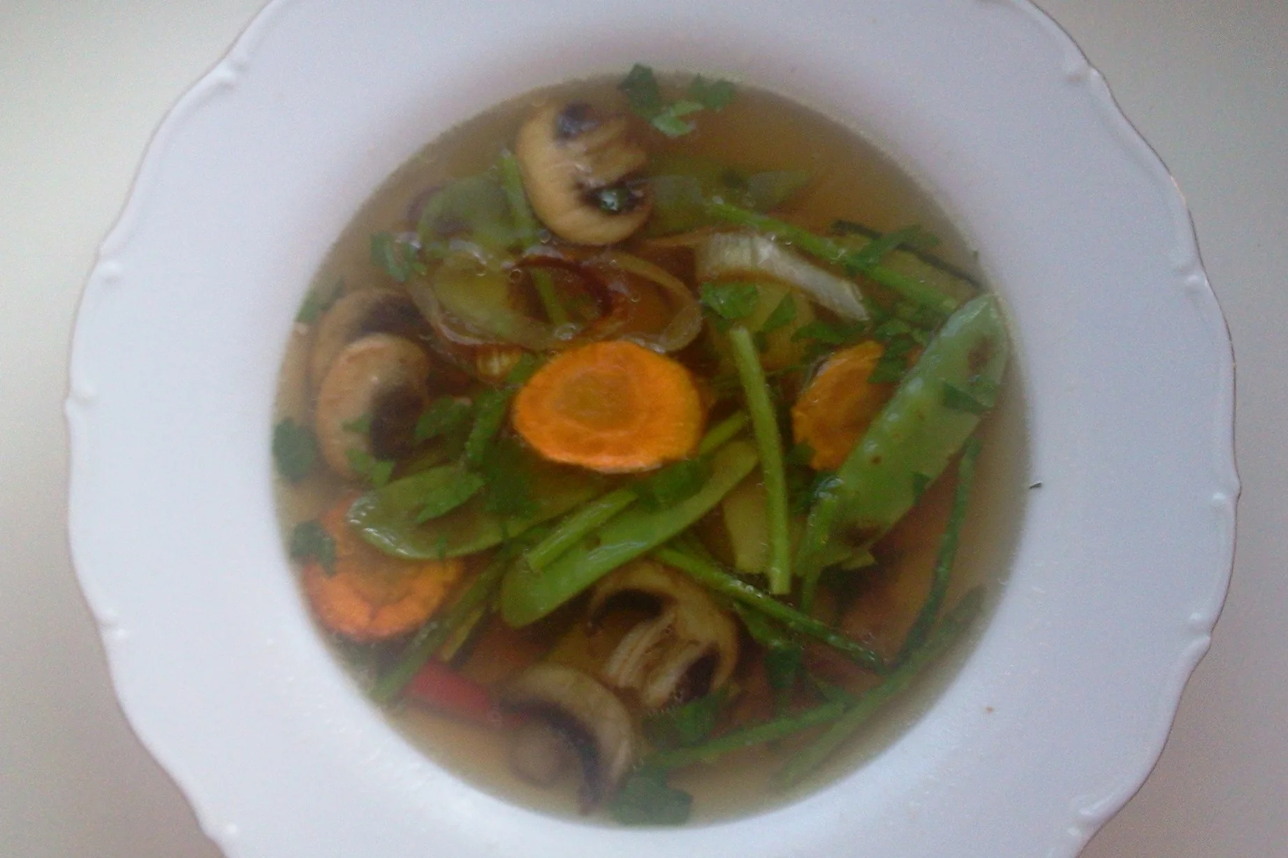 Консоме из говядины с овощами и грибами