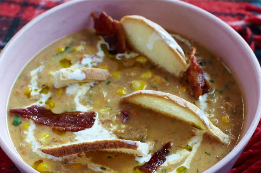 Чаудер из индейки с запеченными овощами